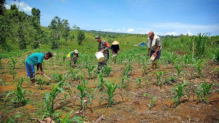 Bentuk dukungan kepada para petani yang dilakukan oleh Babinsa seperti yang dilakukan oleh Serda Kusmanto dengan membantu melakukan pemupukan tanaman jagung milik warga binaanya di Desa Moibaken Distrik Yendidori.