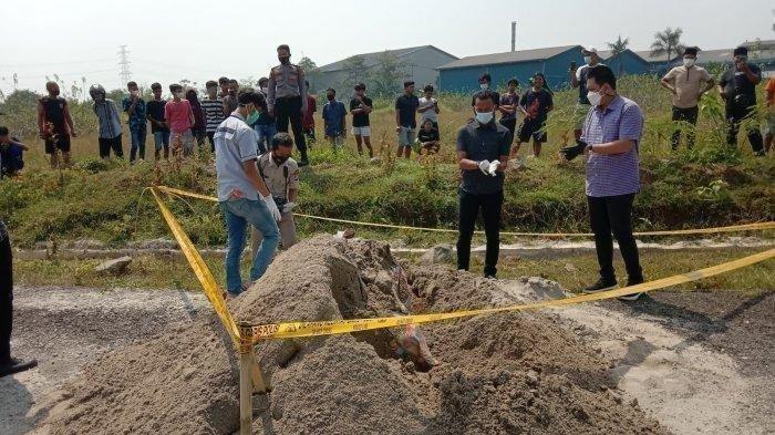 Dari kecurigaan itu, kedua saksi membongkar tumpukan pasir di Kampung Maja Nagih, Desa Julang, Kecamatan Cikande, Kabupaten Serang, Banten, Selasa (27/7/2021) sekitar pukul 09.00 WIB.