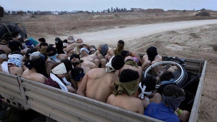 "Mereka tidak mengenakan pakaian, dan tangan mereka diikat dengan borgol plastik oleh tentara Israel."