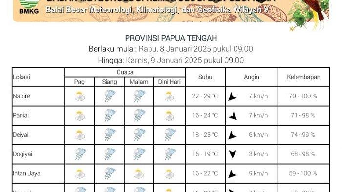 Menurut data yang diperoleh Tribun-Papua.com, Rabu, (8/1/2025), Balai Besar Meteorologi Klimatologi dan Geofisika (BBMKG) Wilayah V Jayapura memperkirakan, kondisi cuaca di provinsi ini masih terus berubah-ubah.