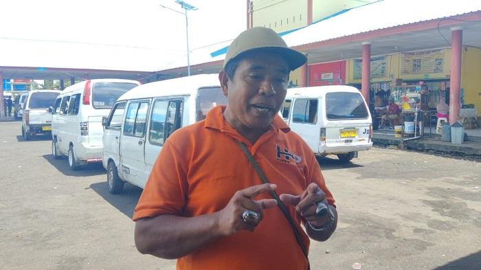 KELUHAN TAKSI KONVENSIONAL- Ketua Koordinator Abe-Waena Terminal Tipe B Kota Jayapura, La Ode Hiasi, saat memberikan keterangan kepada Tribun-Papua.com,Senin (3/2/2025). Foto: Tribun-Papua/Yulianus Magai