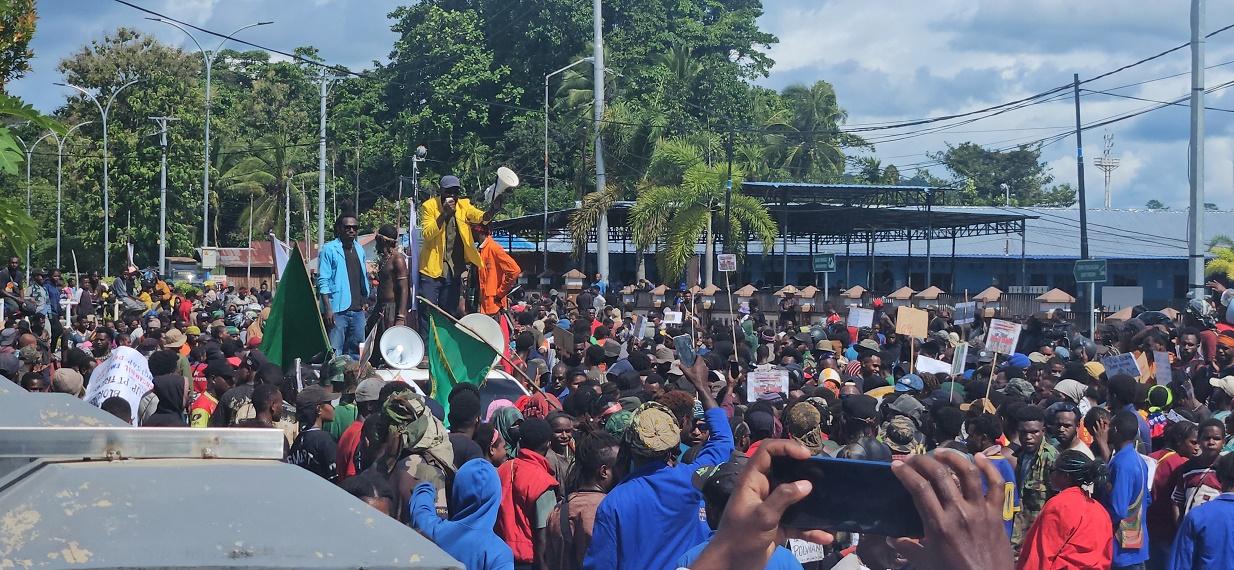 Demonstran di Nabire Melumpuhkan Lalin Jalan Jenderal Sudirman dan Pepera